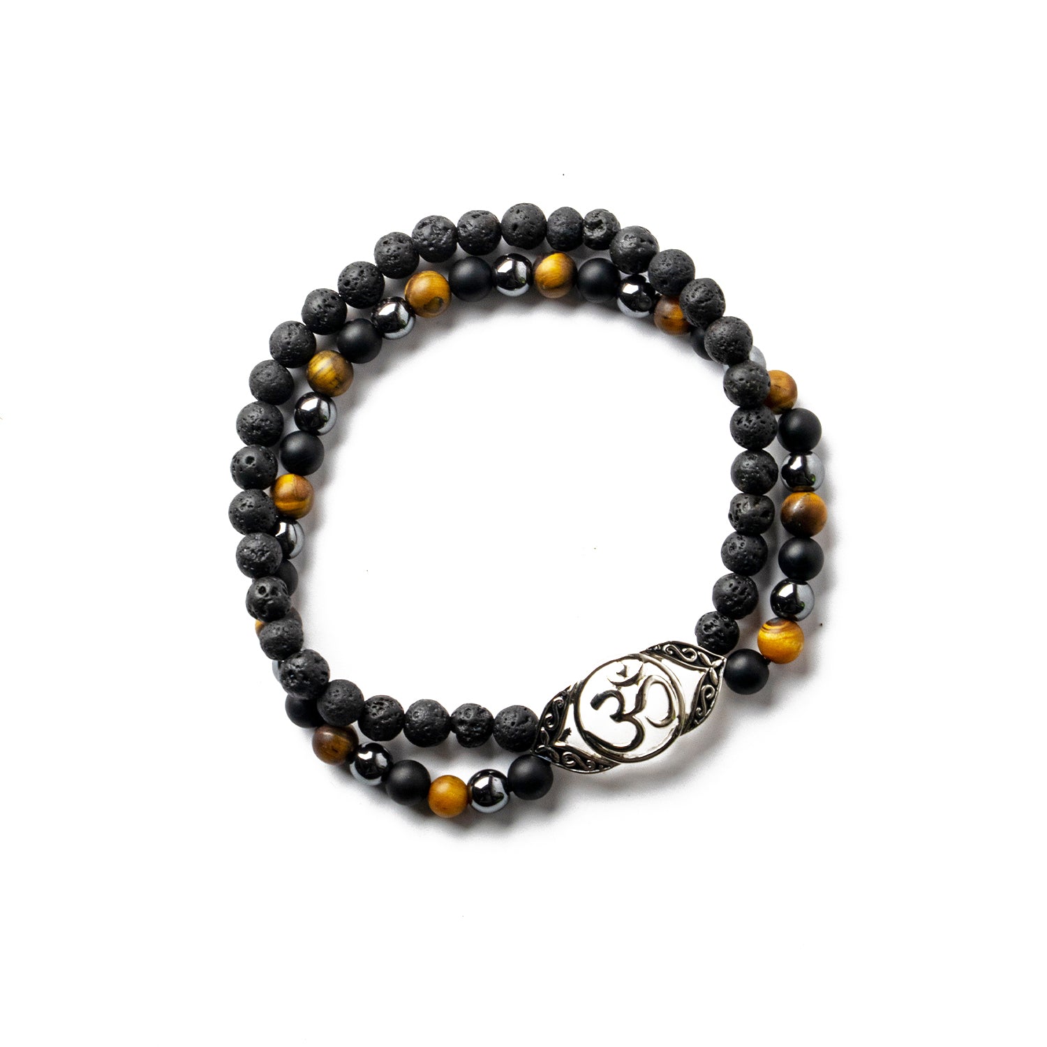 Ornate OM Bracelet in double layer 6mm Gemstone Beads