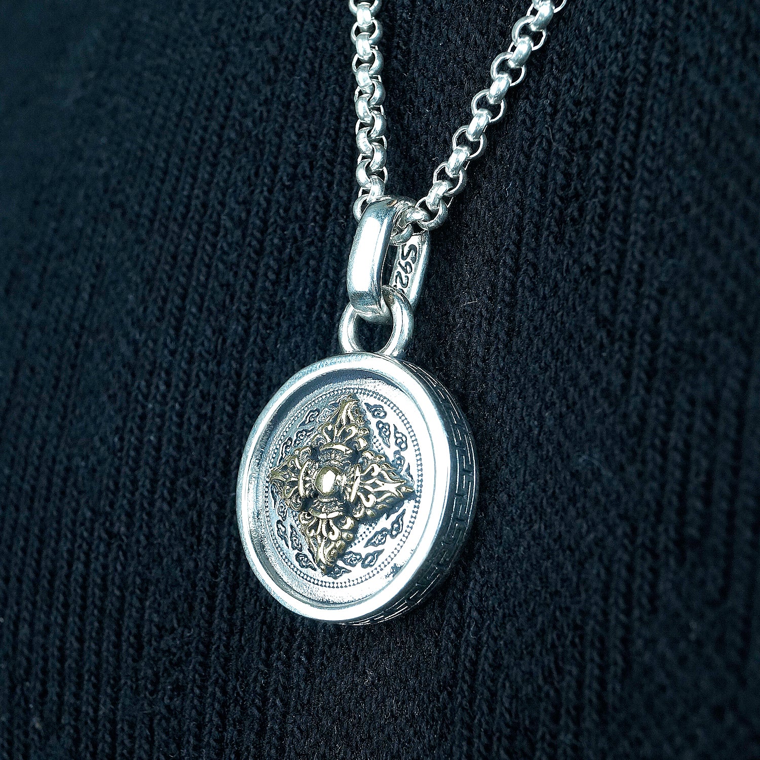 This vintage pendant necklace features a captivating zodiac wheel design, a symbol of cosmic alignment and celestial charm. The gold-tone finish exudes timeless elegance with the Sterling silver Base