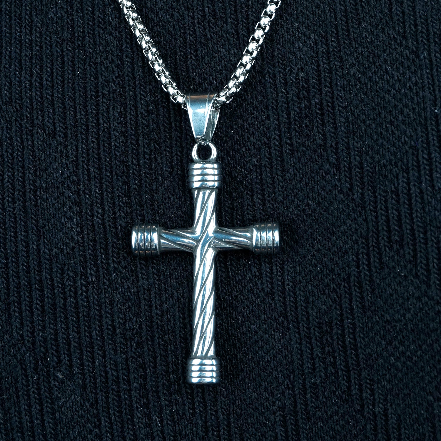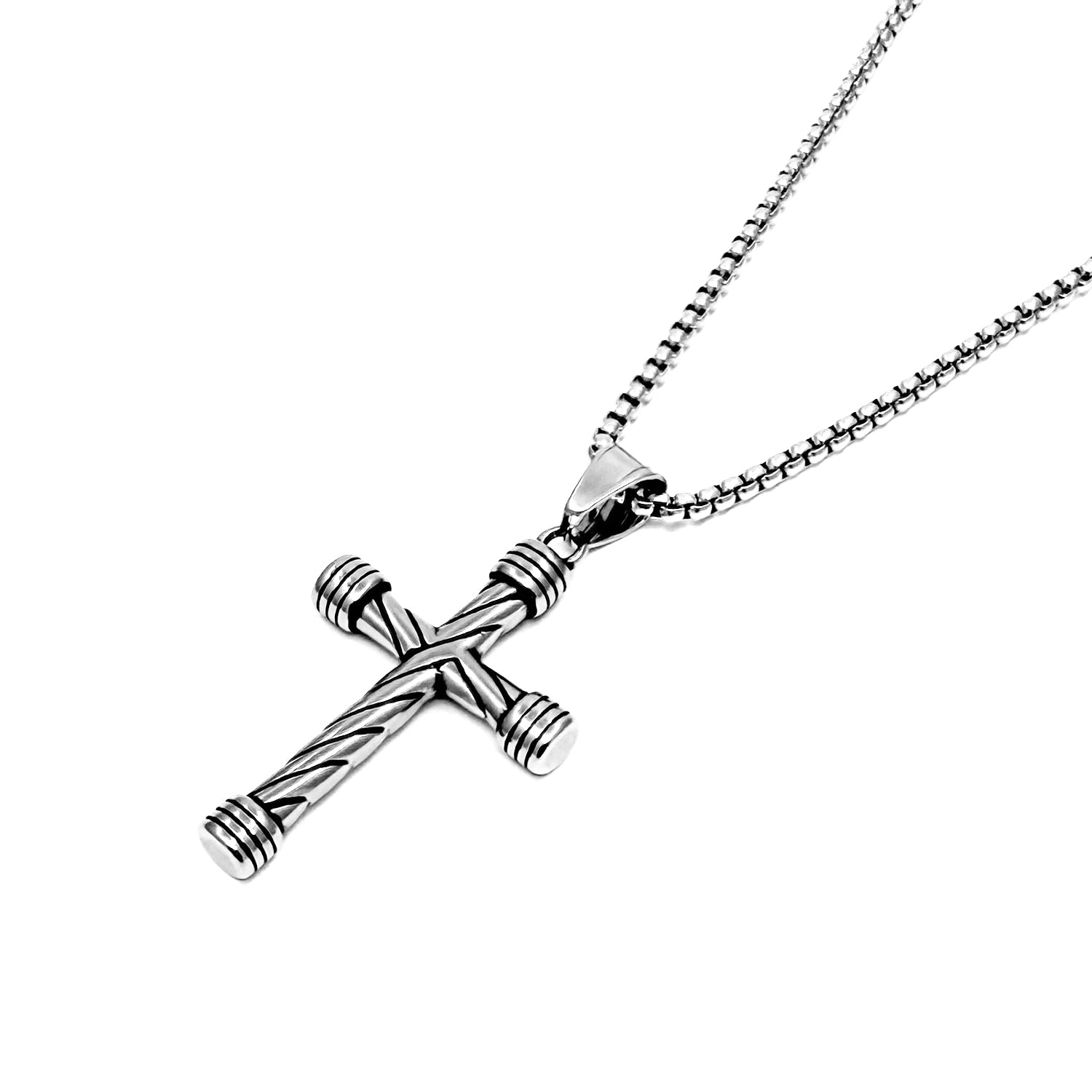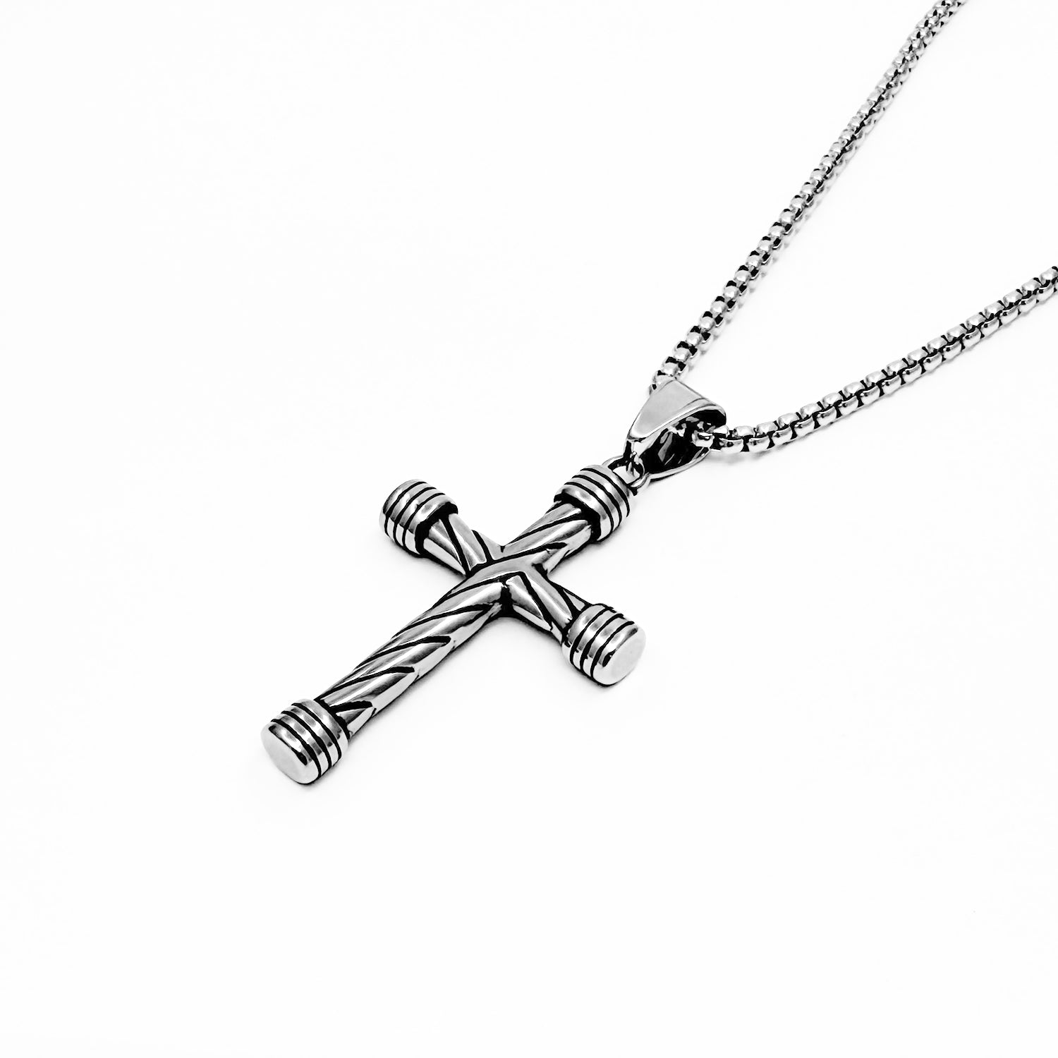 The Twisted cross chain Pendant in 316L stainless steel and antique work and comes with 2mm box chain. The most celebrated jewelry Motif that makes a statement