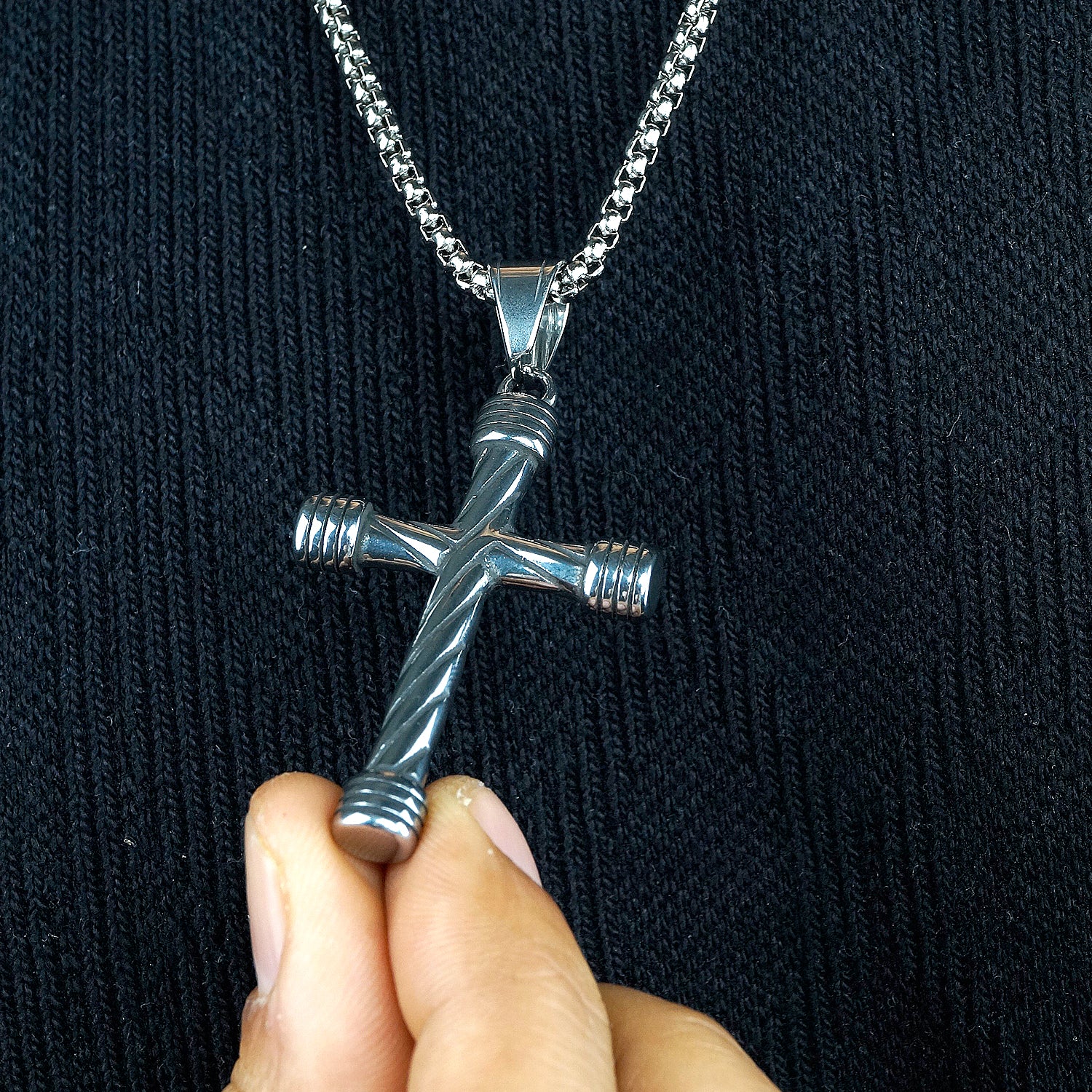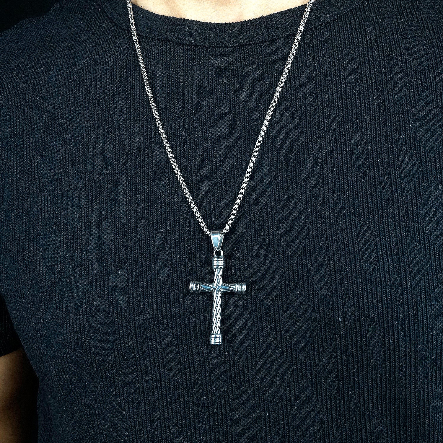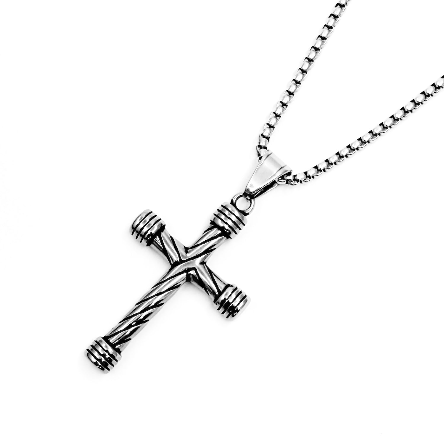 The Twisted cross chain Pendant in 316L stainless steel and antique work and comes with 2mm box chain. The most celebrated jewelry Motif that makes a statement