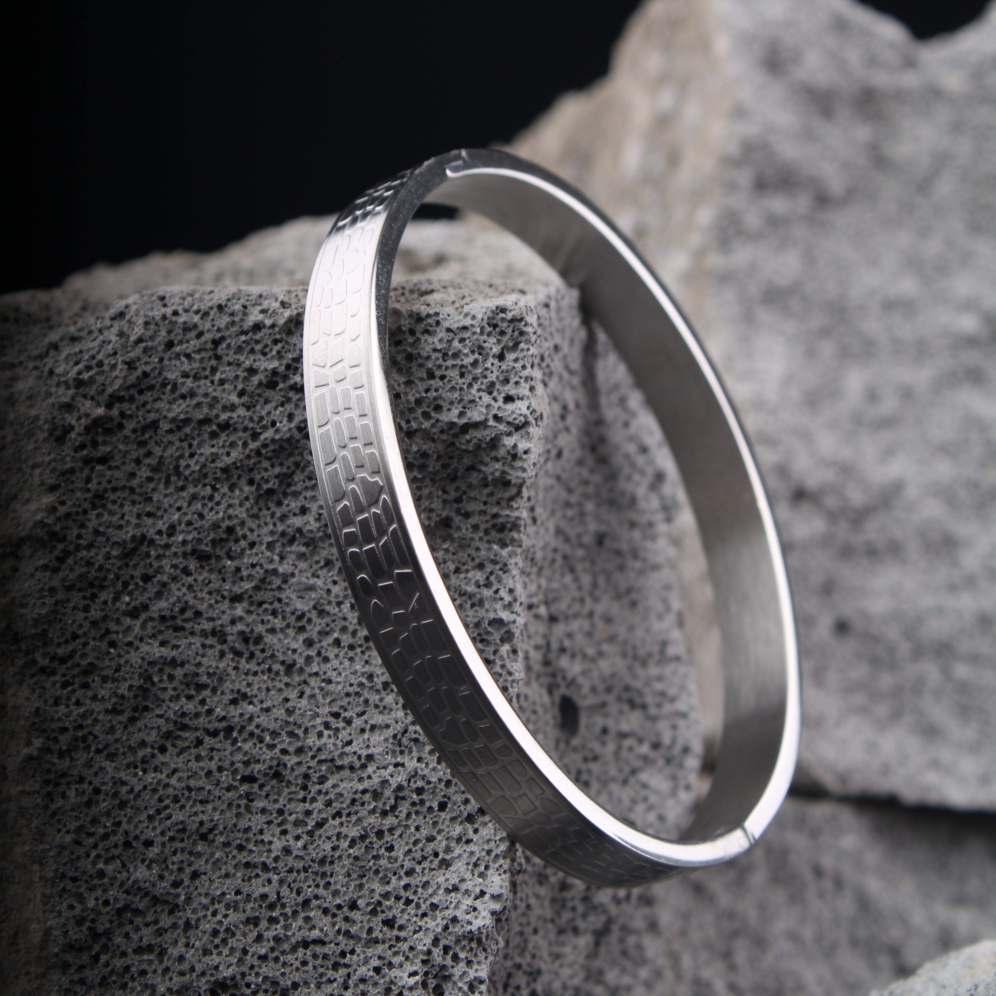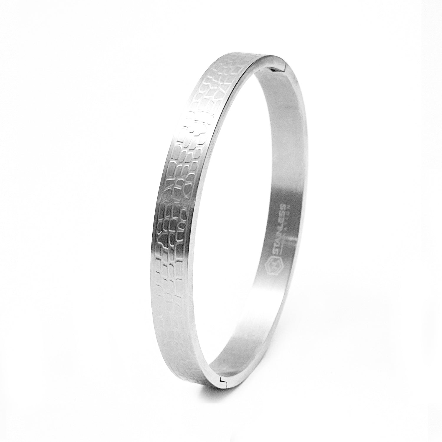 Brick Finish White Stainless Steel Cuff Bangle .