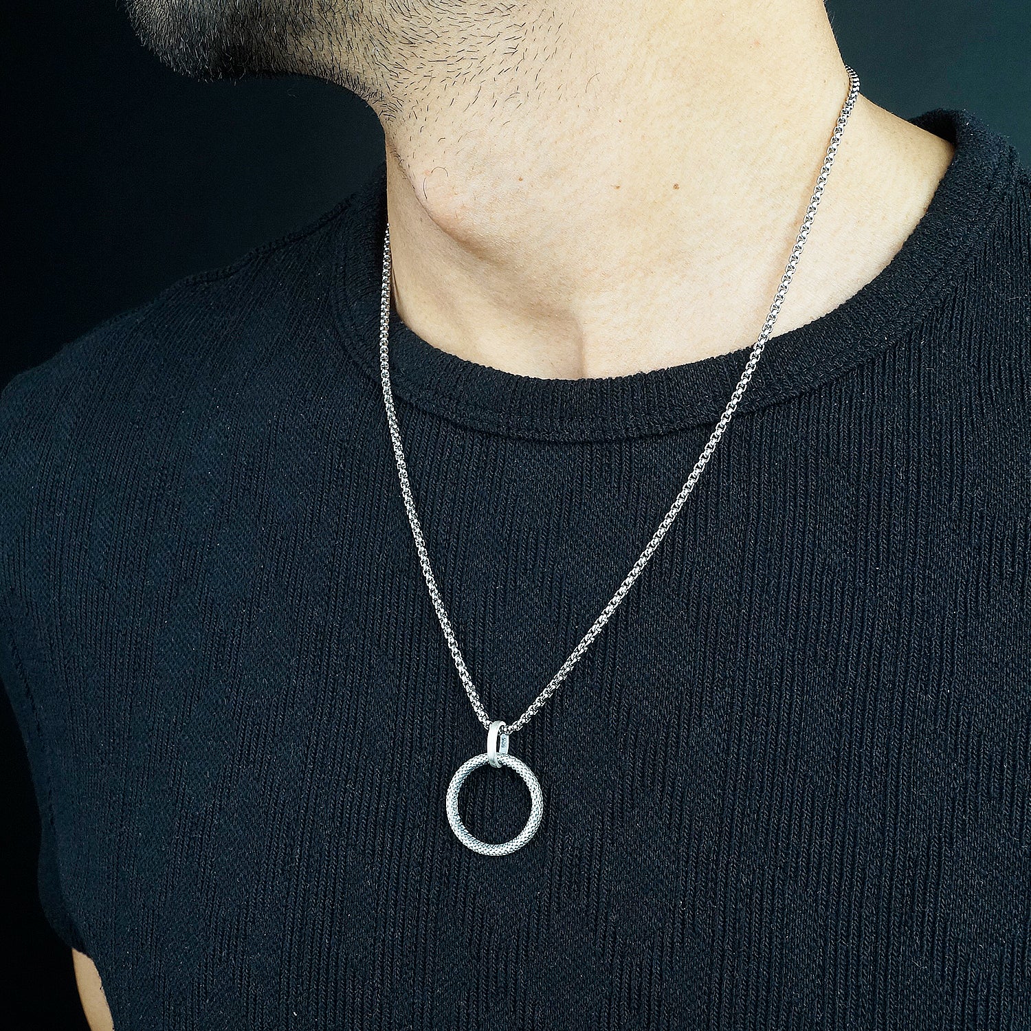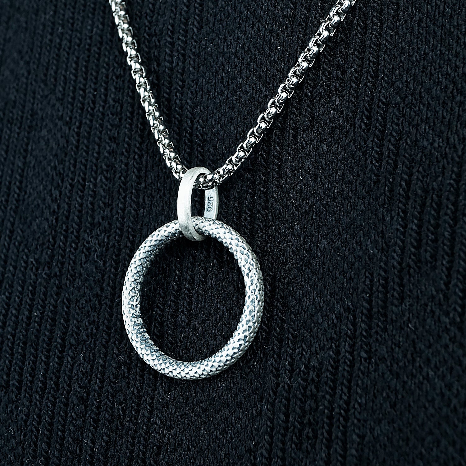 Forged from 925 sterling silver and moulded with mysterious skill, the Draconique circle pendant has a circuler shape with crafted dragon scales. Mythically eye-catching, this oxidized,matte finish accessory elevates any look and adds to the air of dynamic charm.