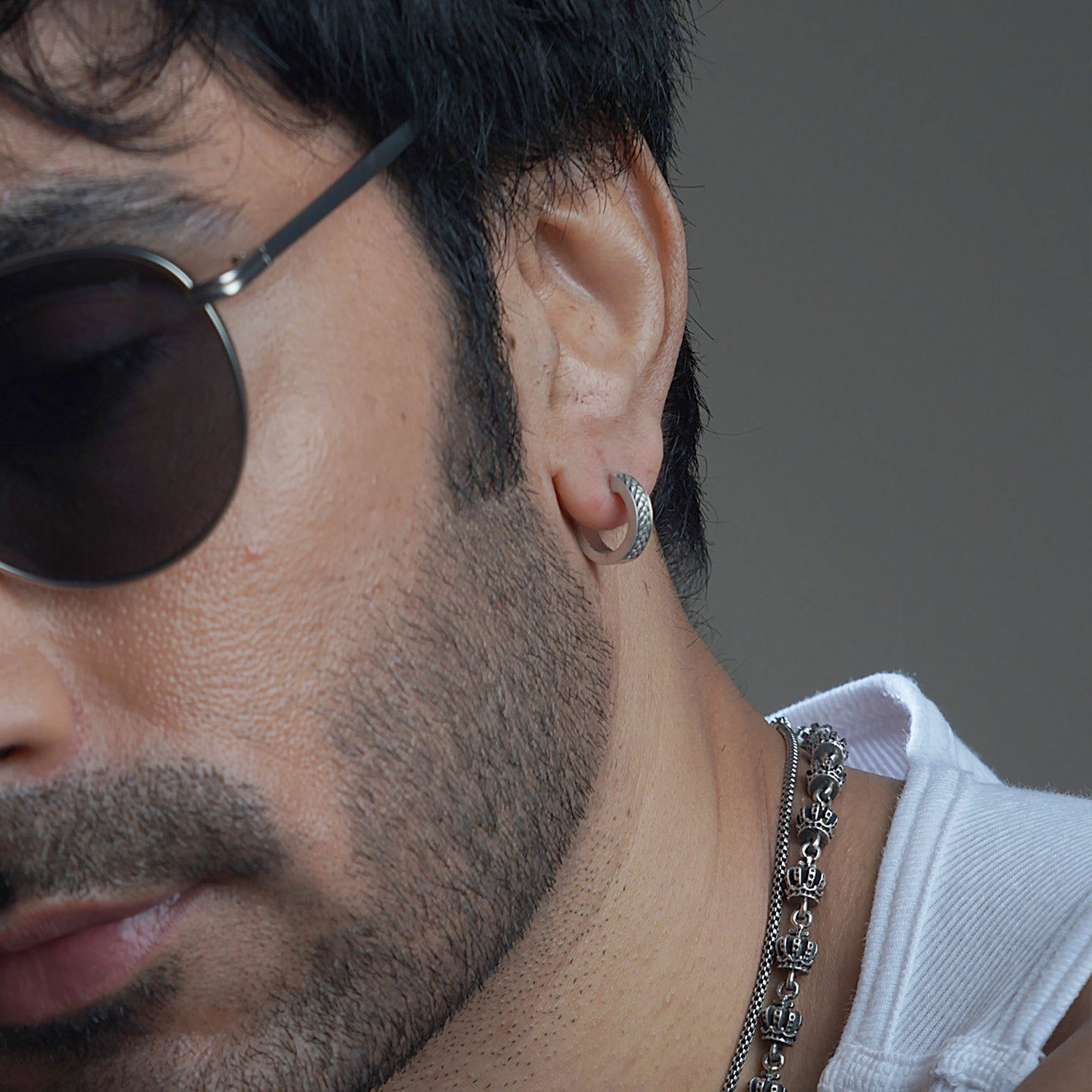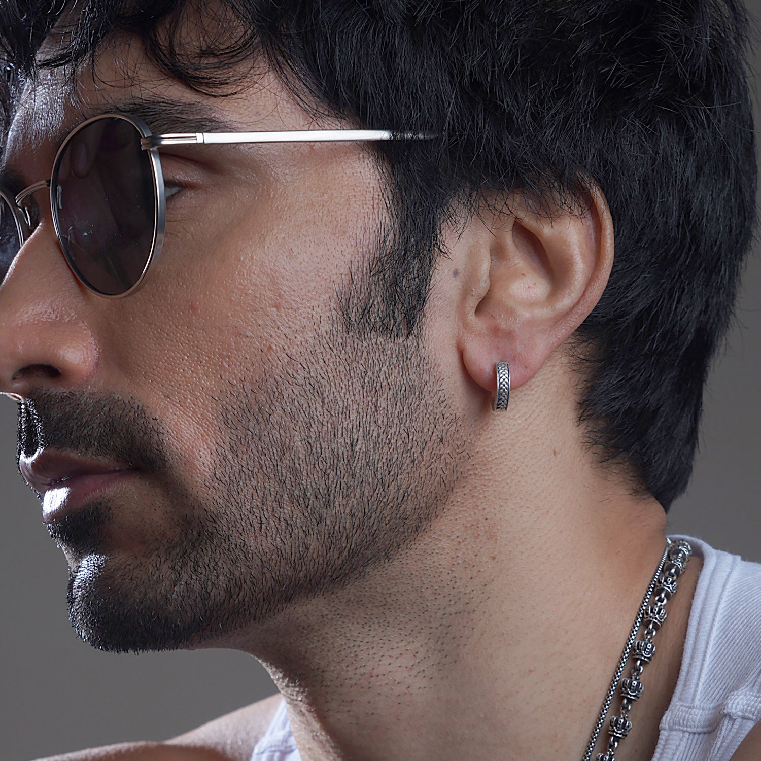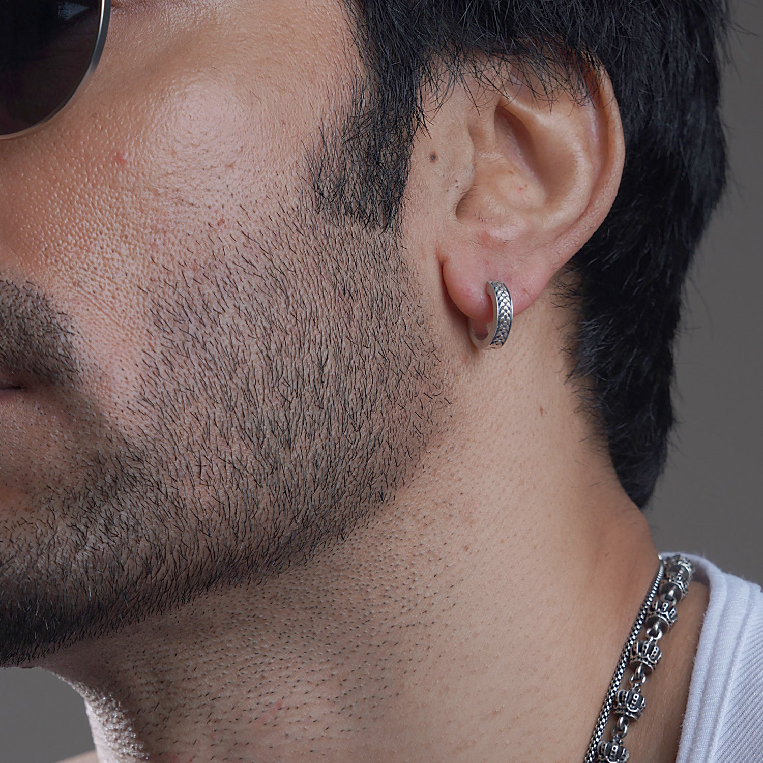 Leviathan - Sterling Silver Men's Hoop Bali Earrings