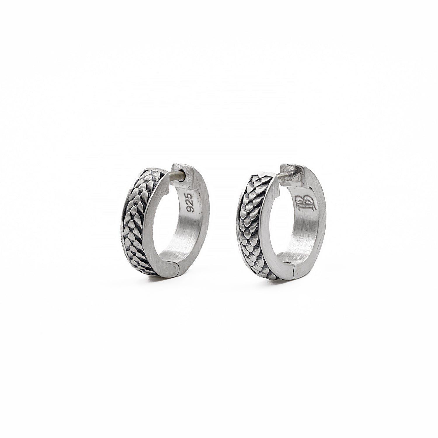 These hoop earrings tell a story of mystery and mythicism with their dragon-scale texture.