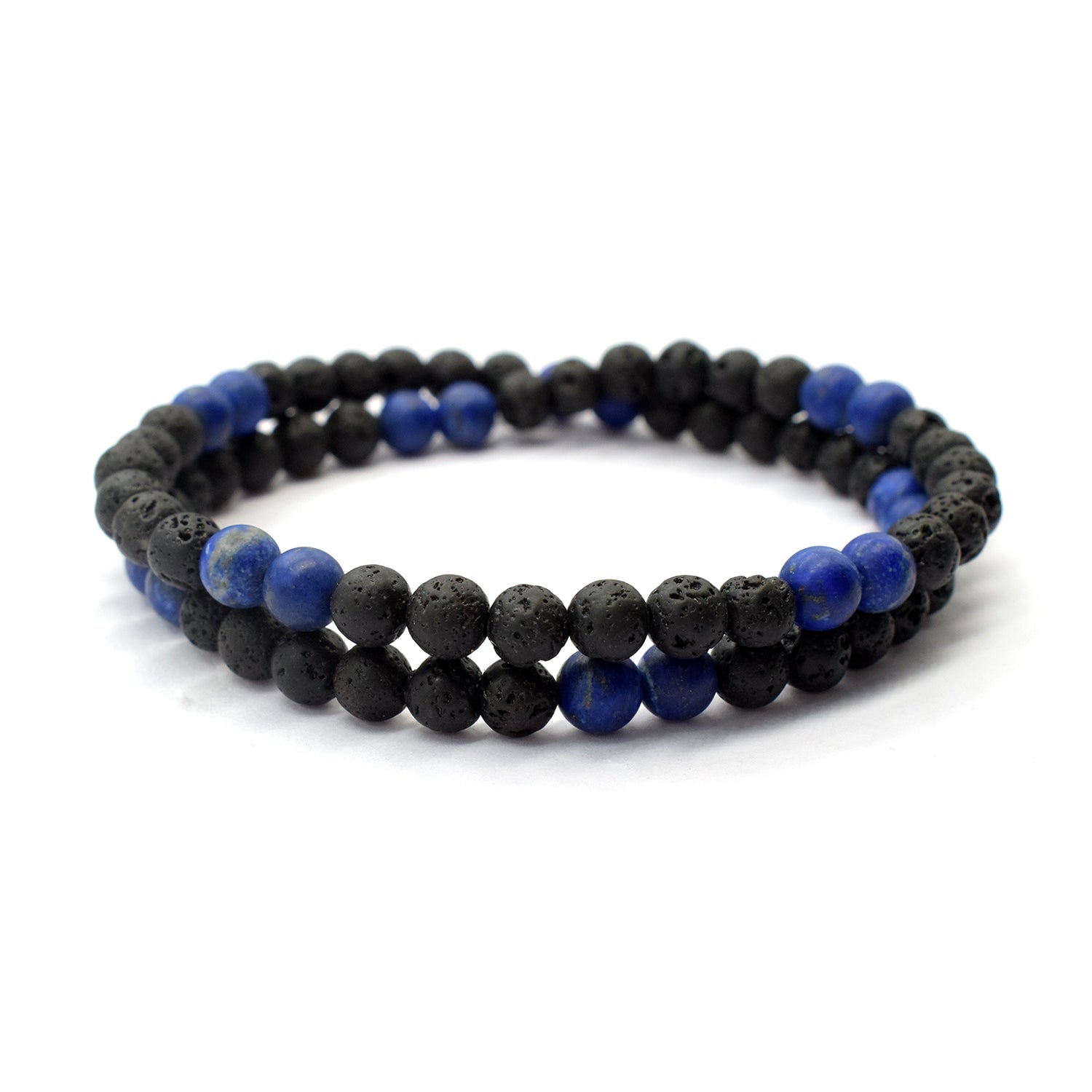 Two Layer Wrap Bracelet in Lapis Lazuli, Lava Gemstone Beads