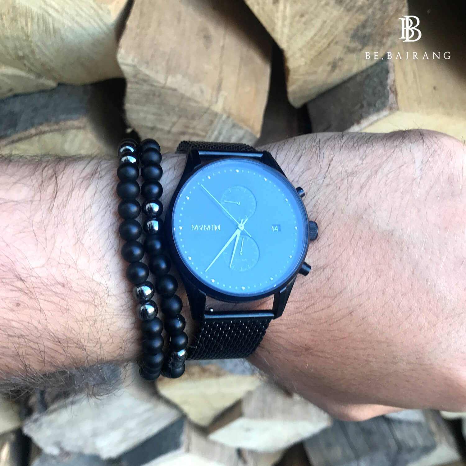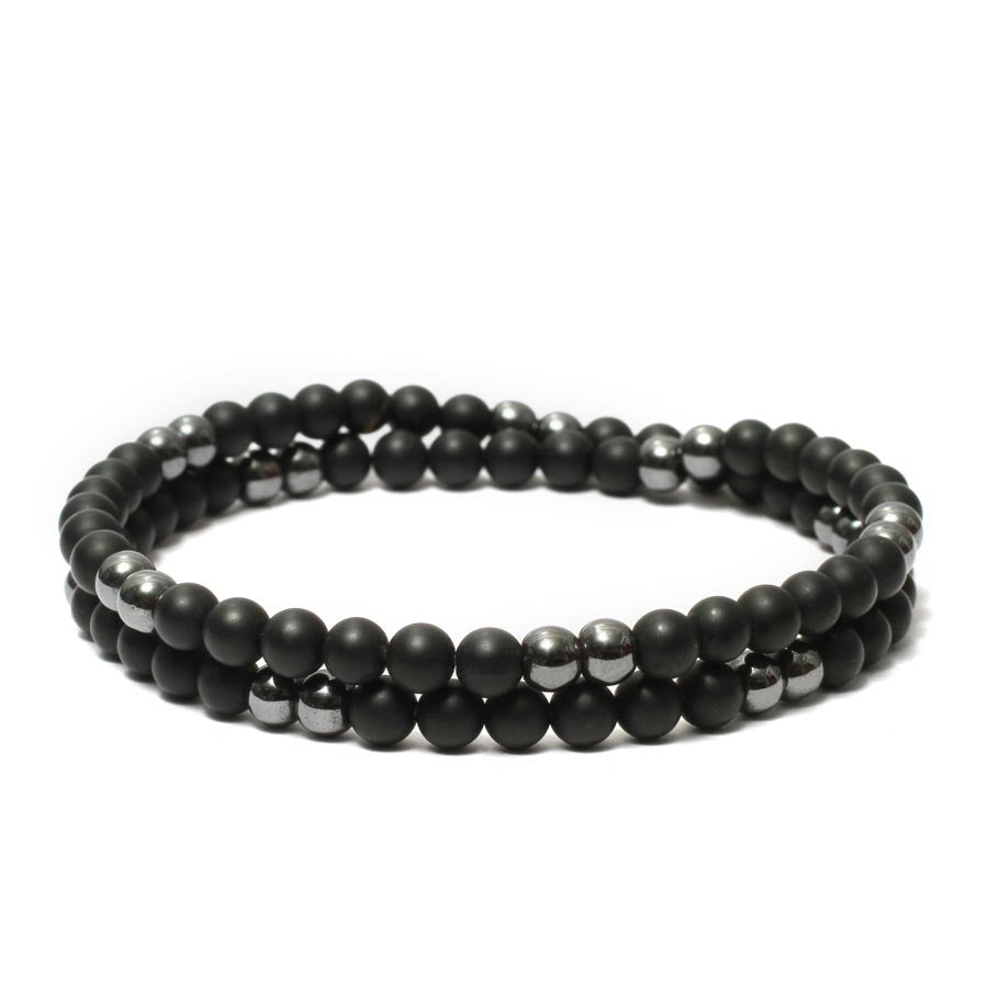 Two Layer Wrap Bracelet in Black Onyx, Hematite Gemstone Beads