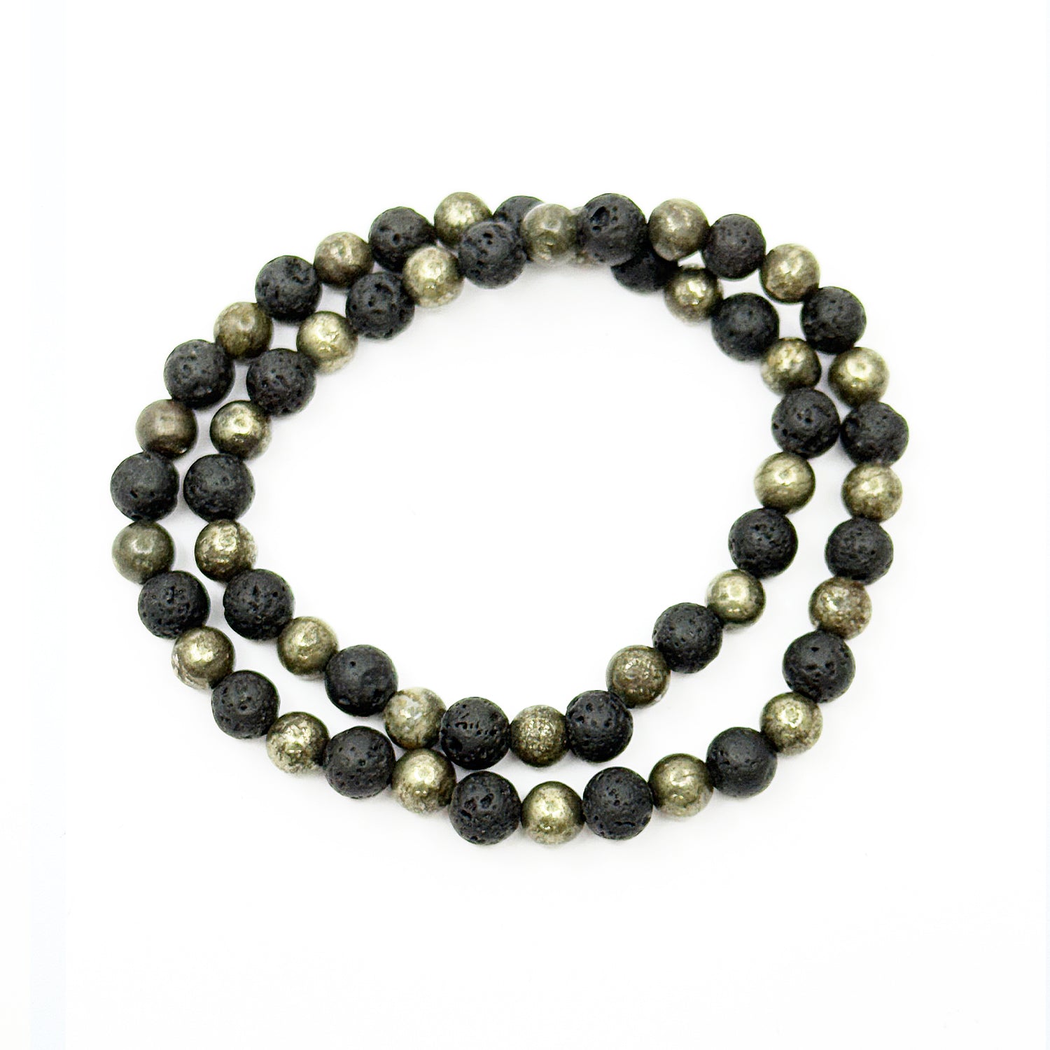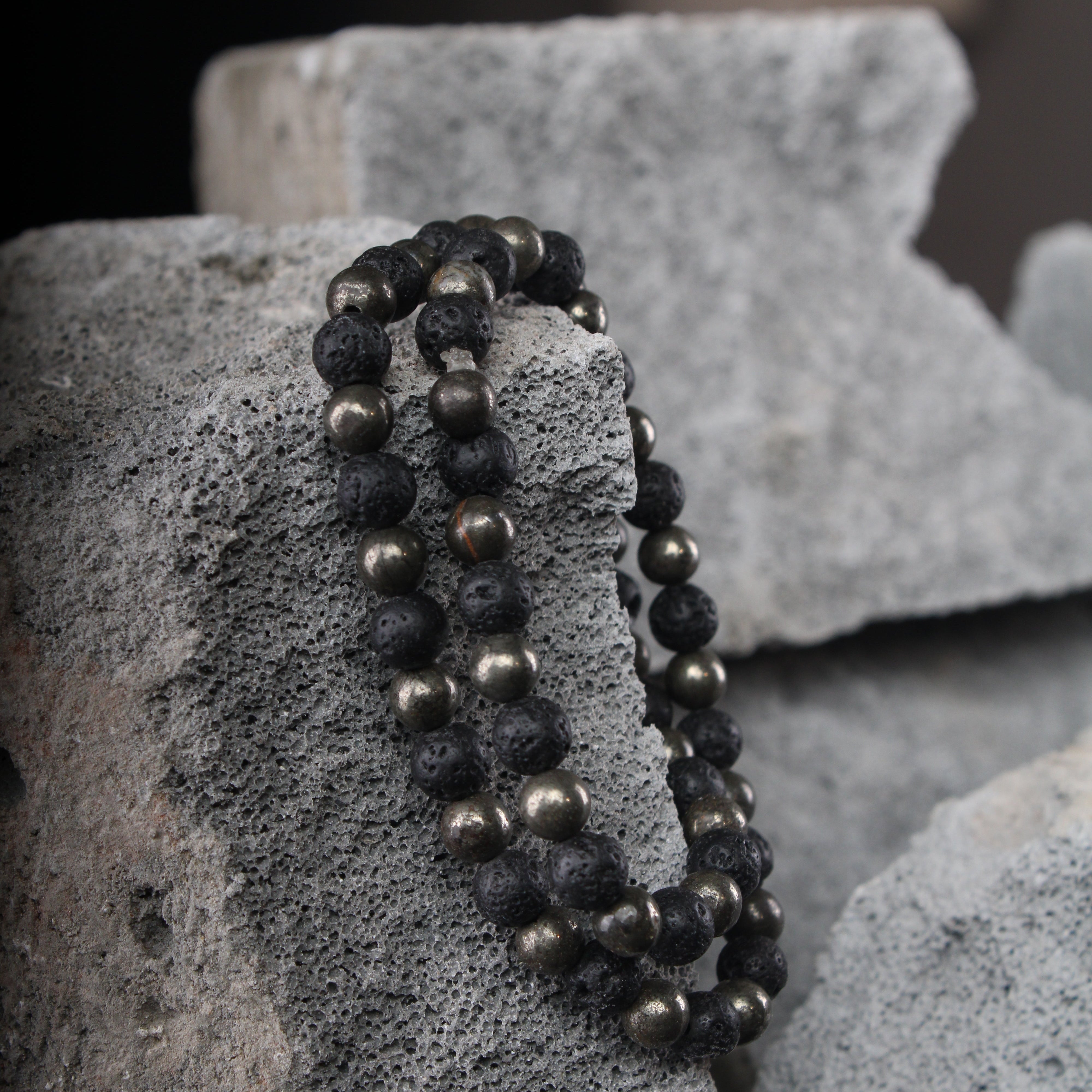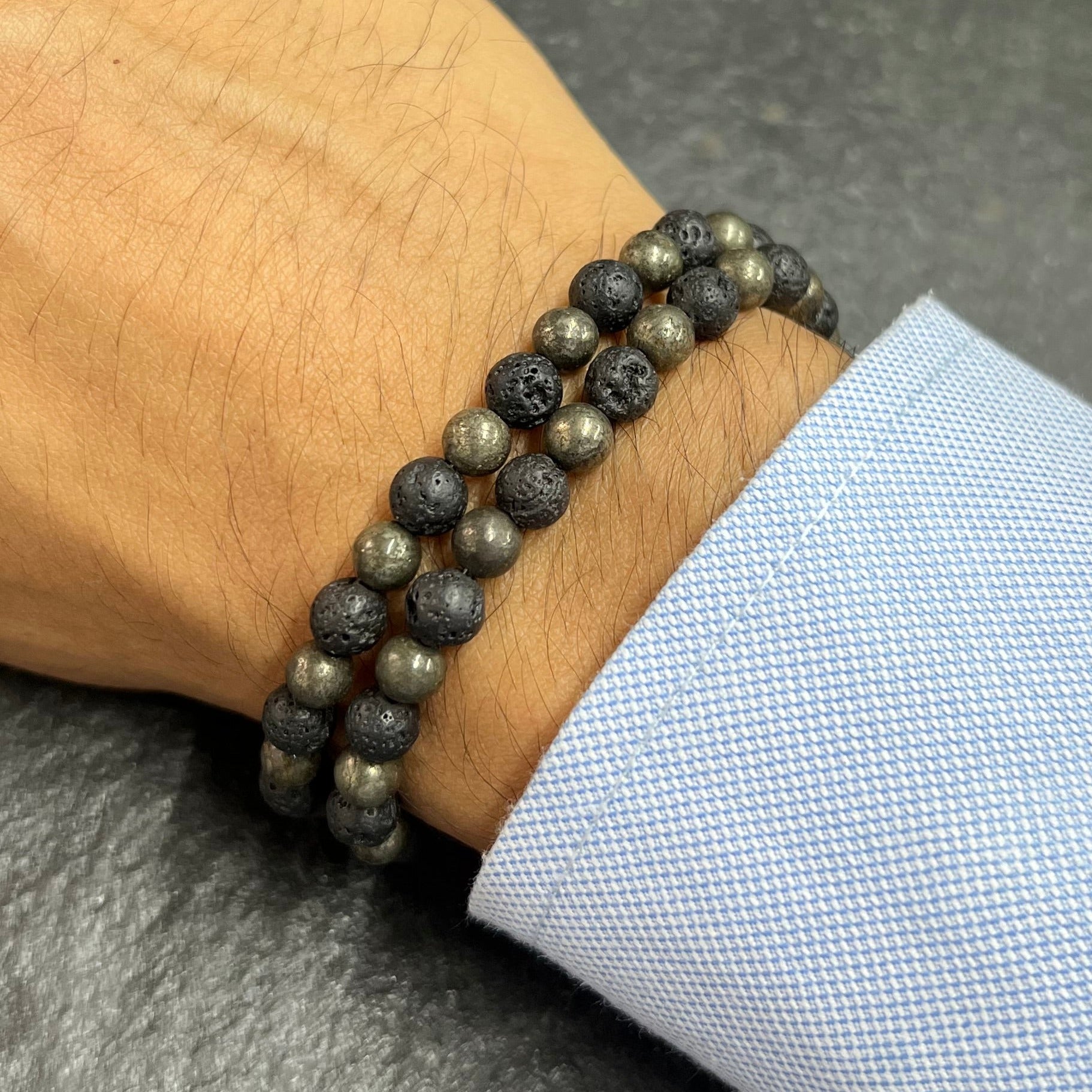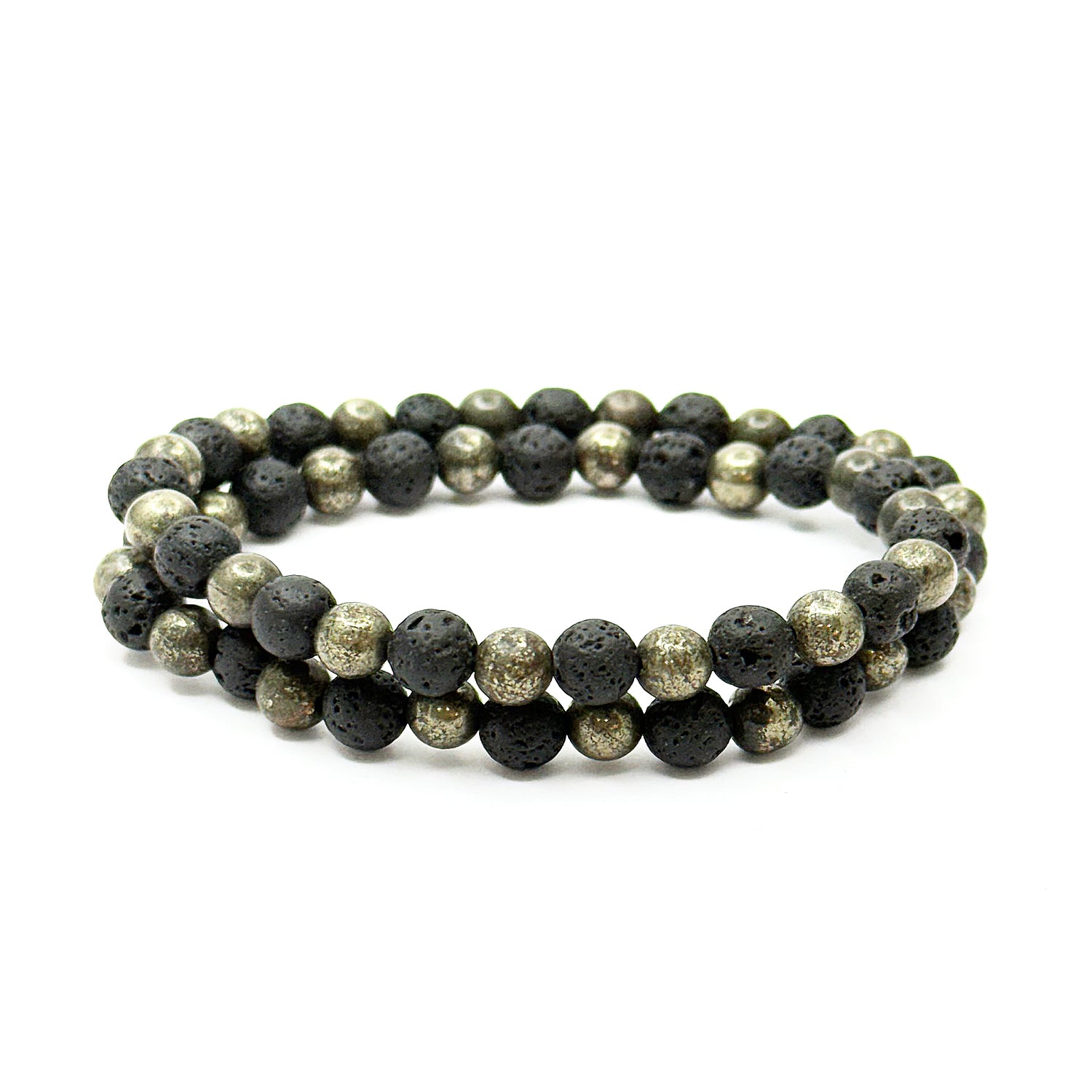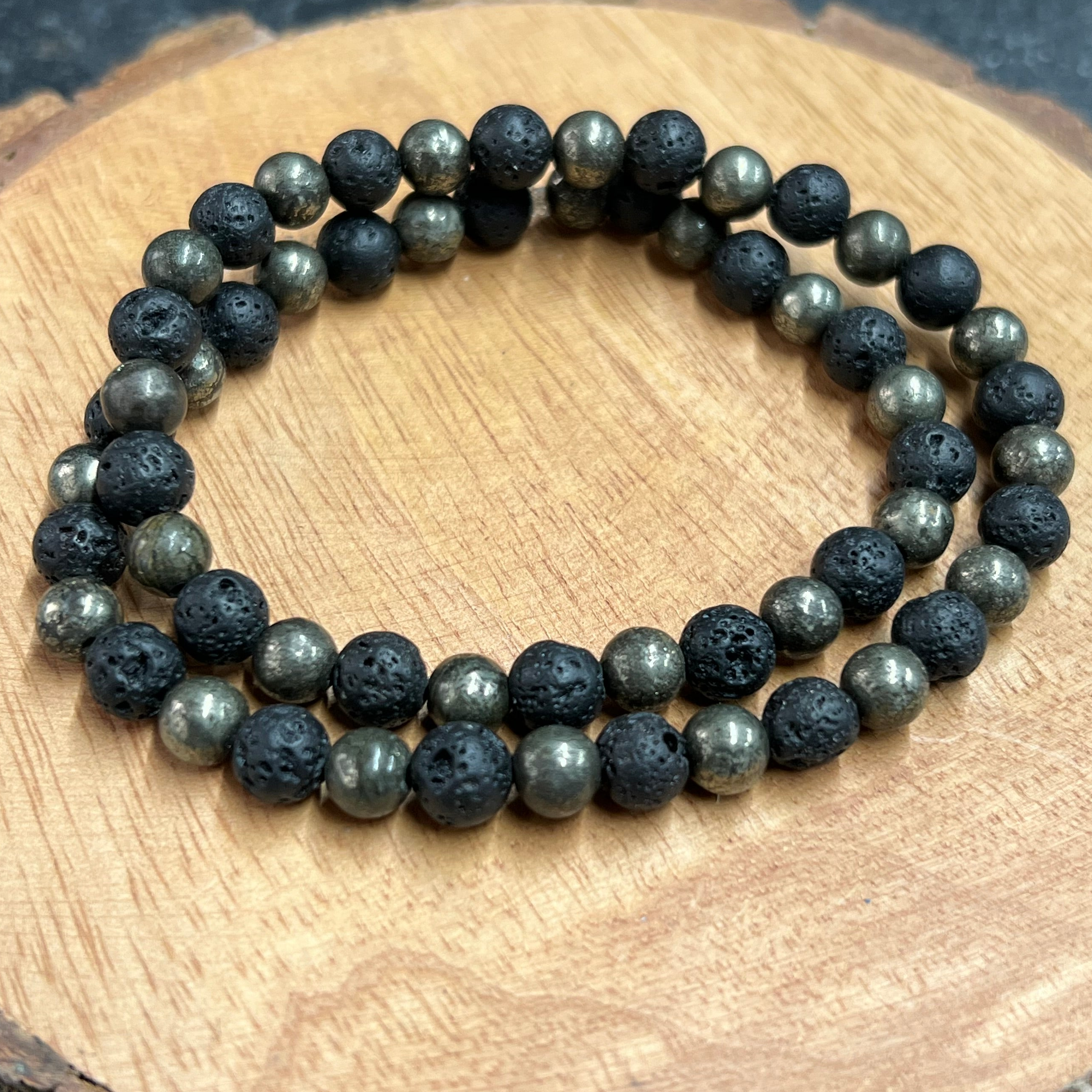 Two Layer Wrap Bracelet in pyrites beads & Lava Gemstone Beads