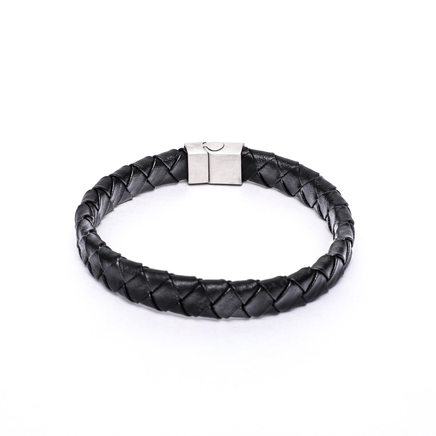 12x6mm Broad Weave Black Flat Leather Bracelet with Magnetic Clasp