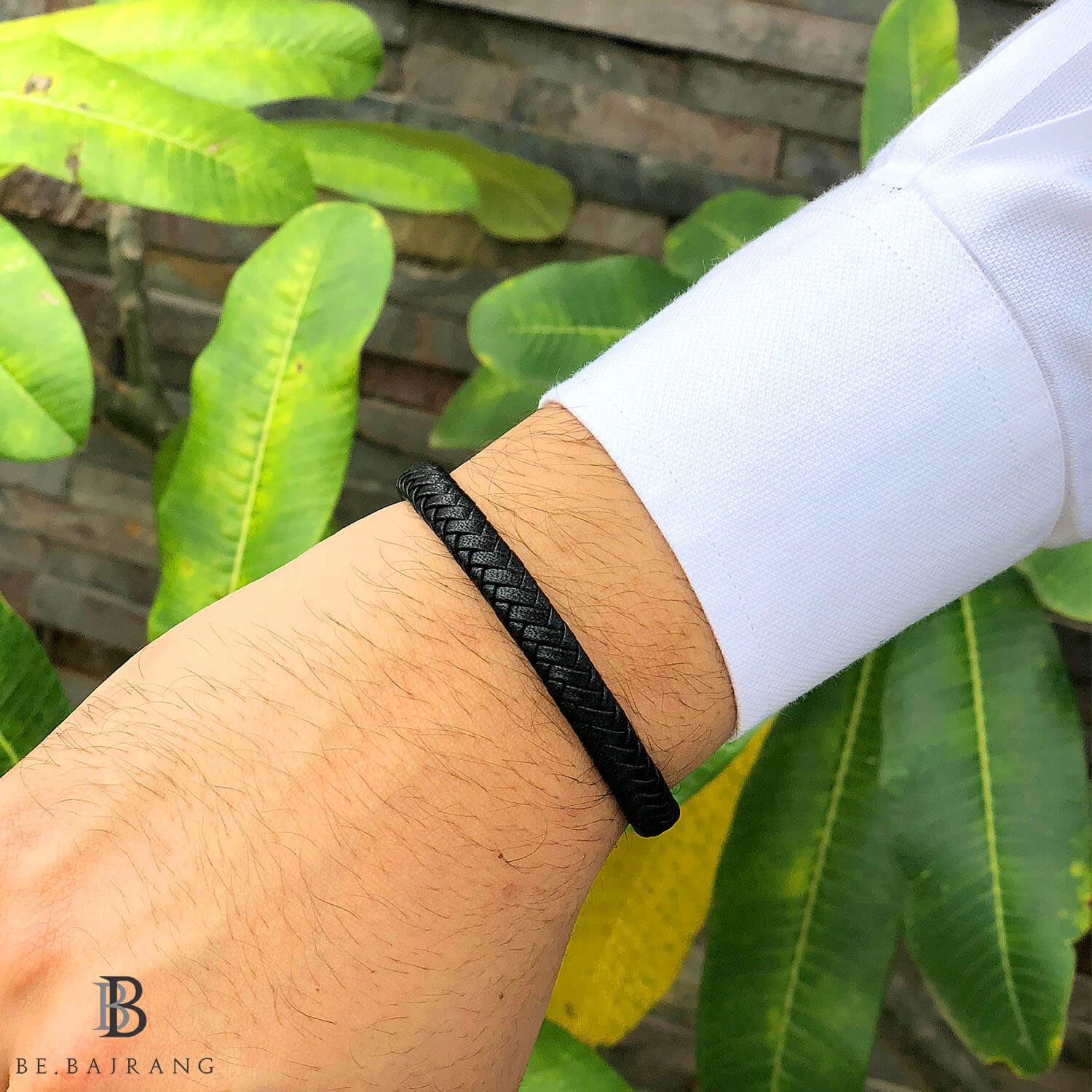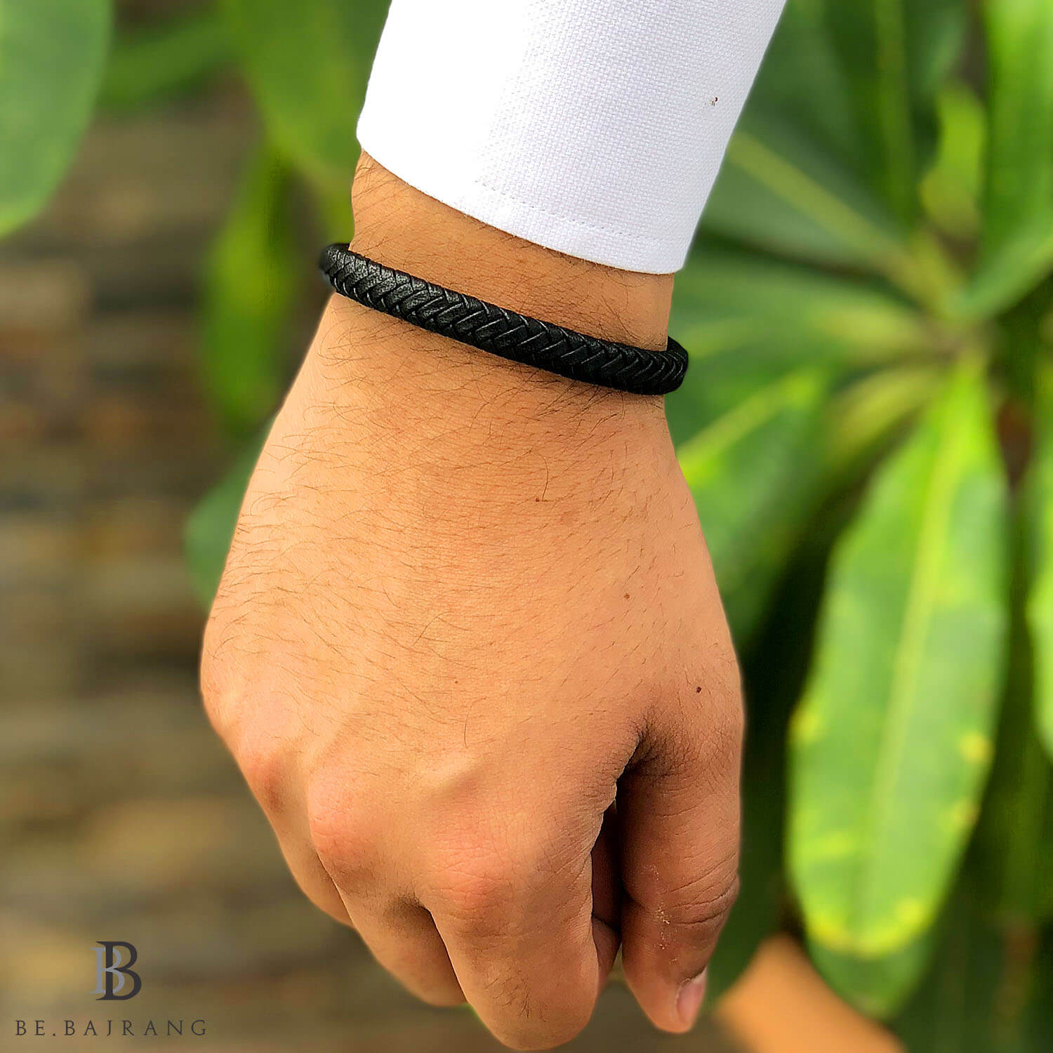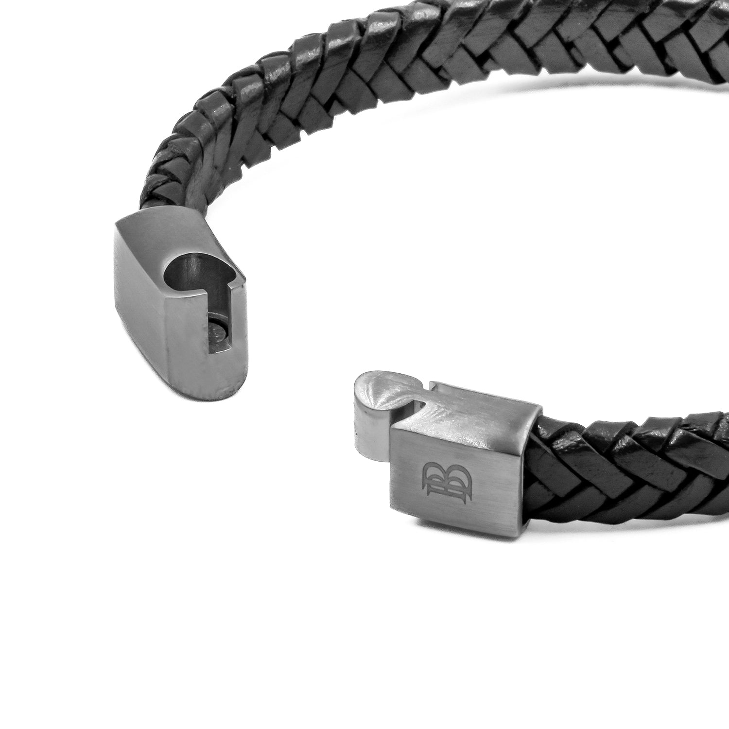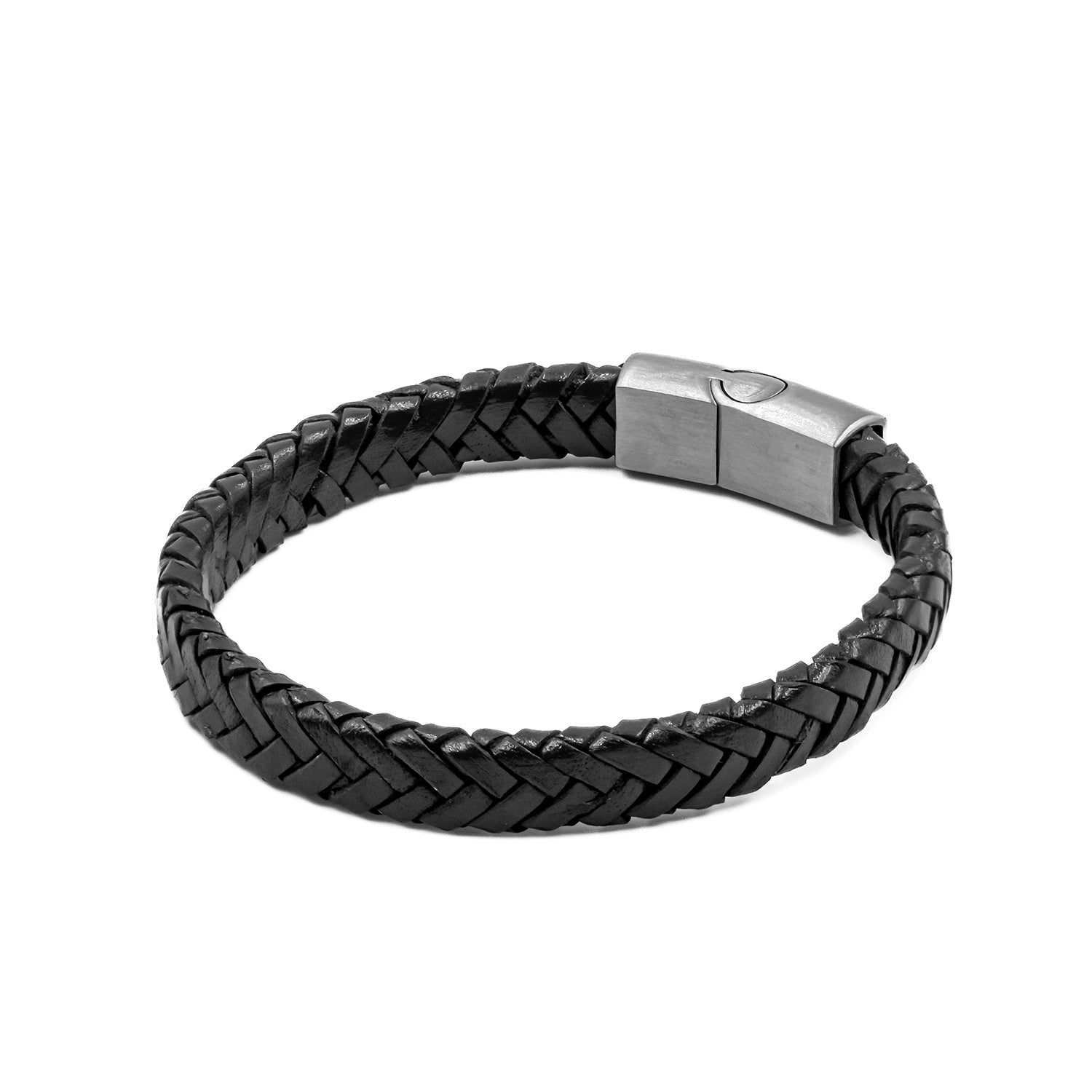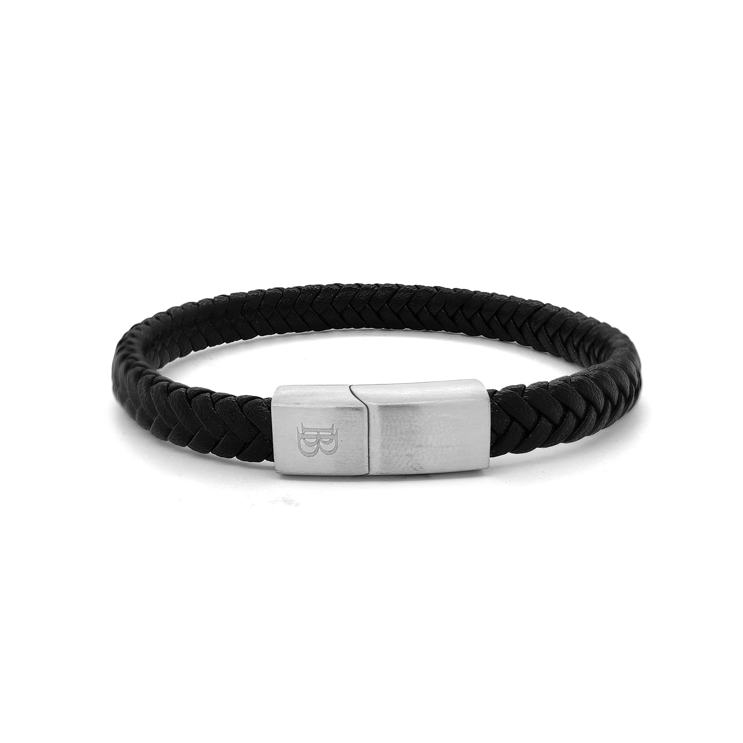 Black Flat Leather Bracelet With Brushed Stainless Steel Lock