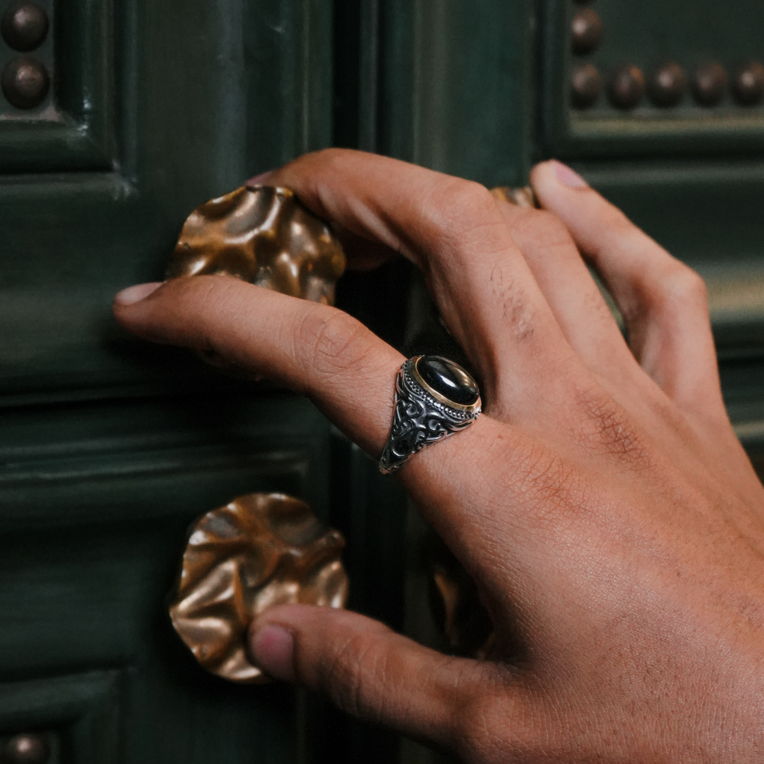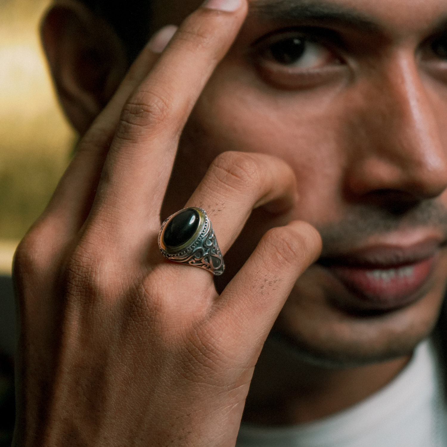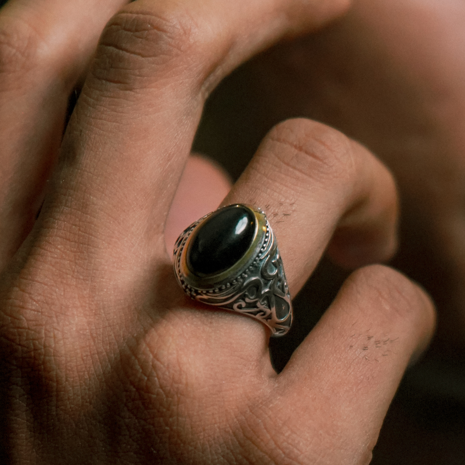 Vintage Filigree Ring IN 925 Sterling silver with Black Onyx Stone