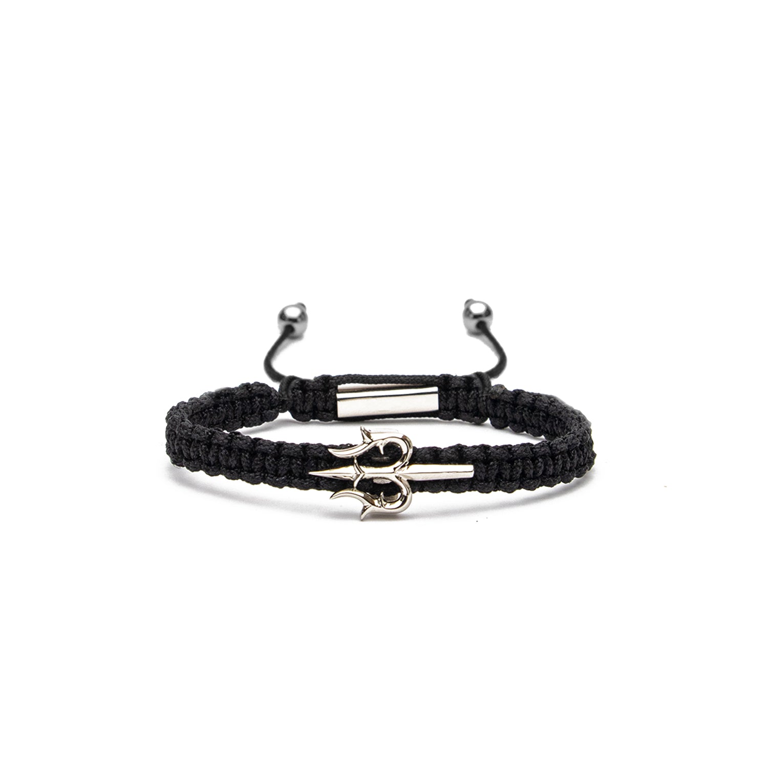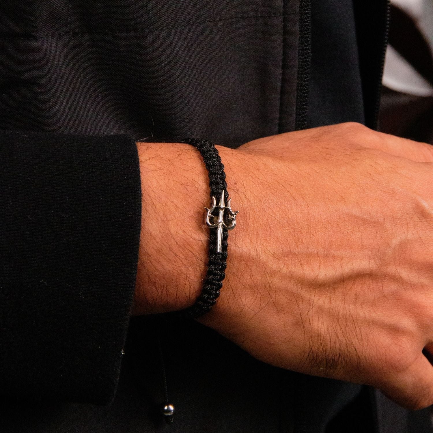 The Mighty Trishool motif In Brass alloy fastened with Black Nylon thread