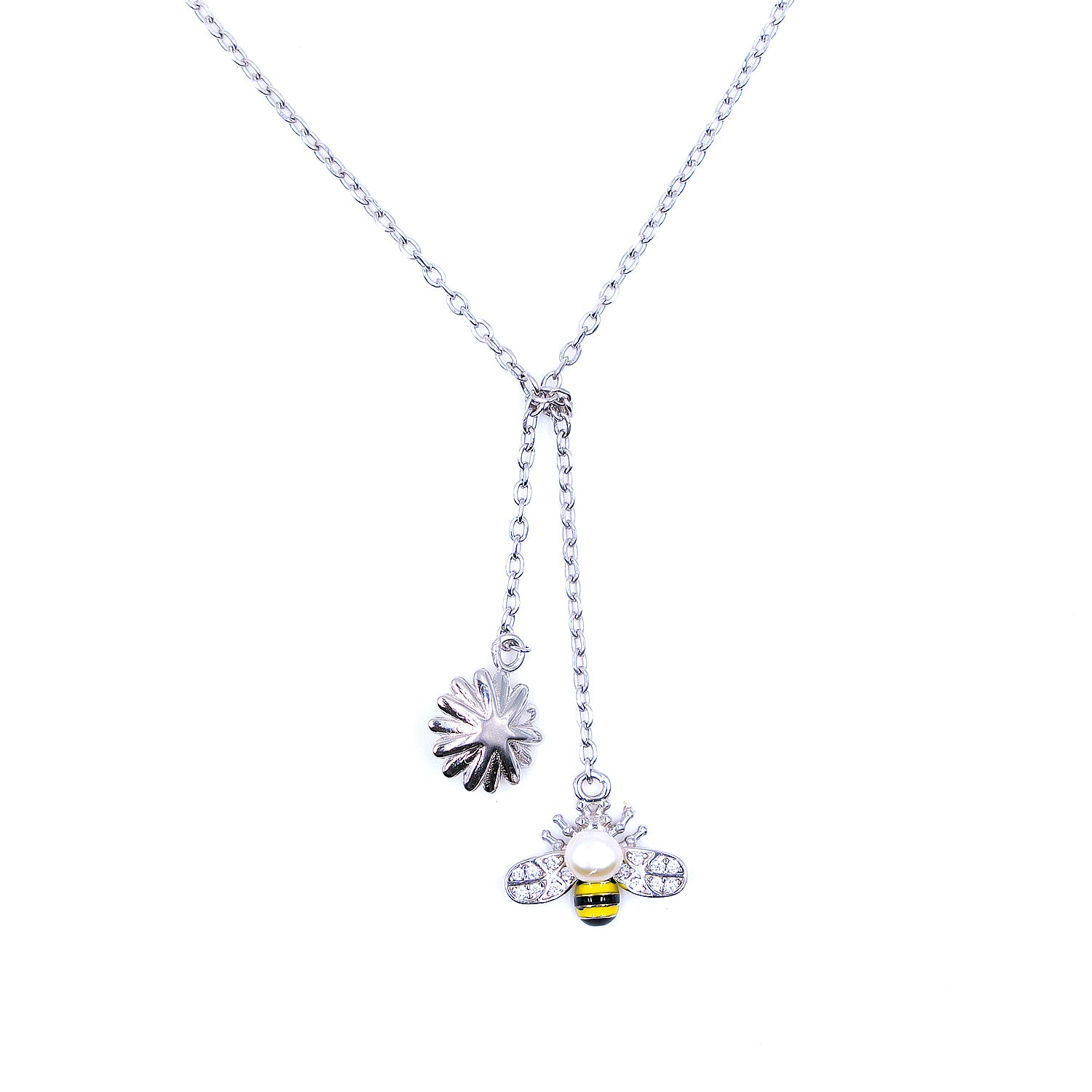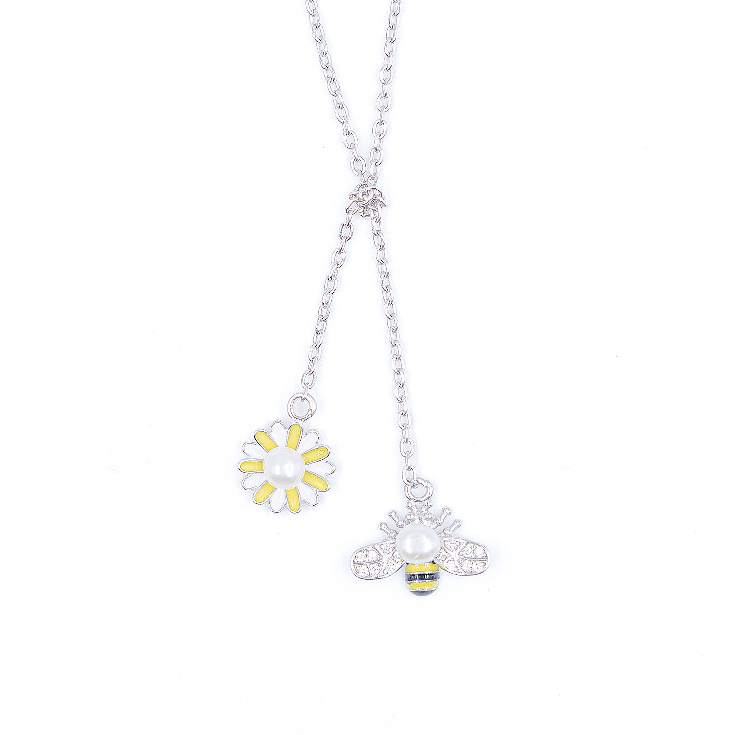 This charming Floral Bee Enamel Chain Earring Set is crafted from 925 sterling silver and features whimsical bee and flower motifs.
