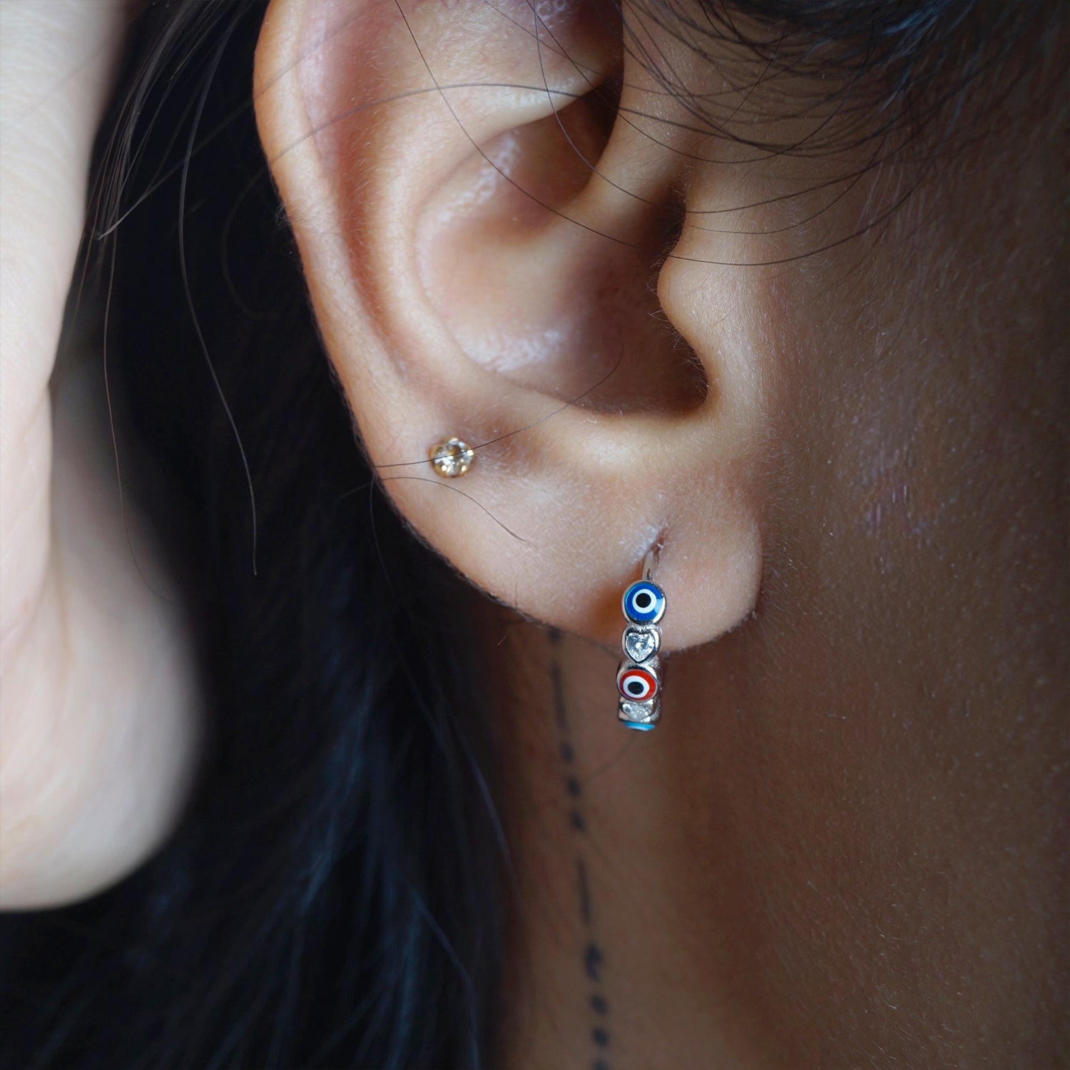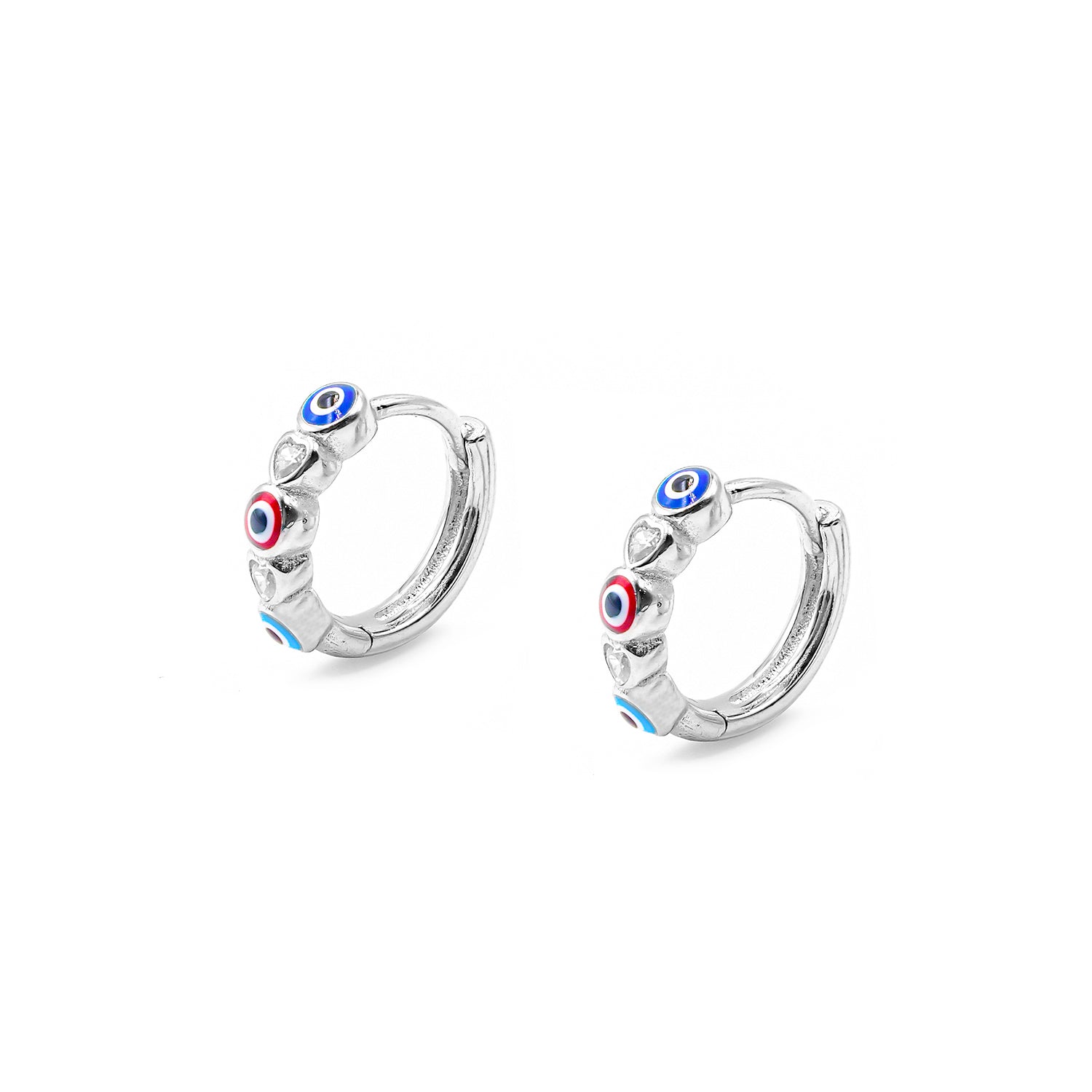 Protect your aura with a splash of color and sparkle. These stylish Evil Eye Hoop Earrings feature a series of vibrant enamel evil eye charms in blue, red, and turquoise, alternating with sparkling cubic zirconia stones. Crafted from 925 sterling silver, these hoops combine meaningful symbolism with modern elegance