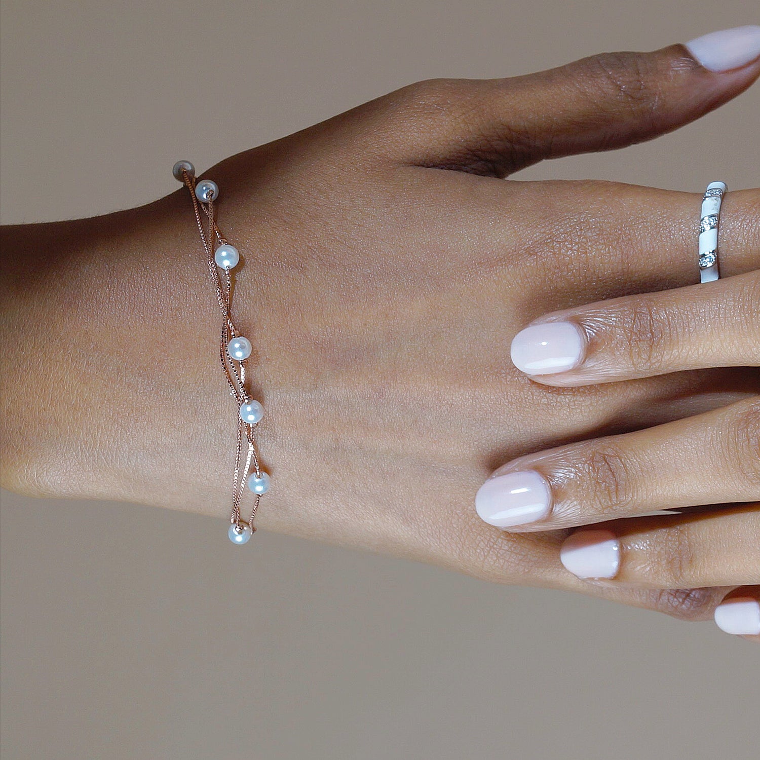 Multi layer Classic Pearl Bracelet in Rose gold finish