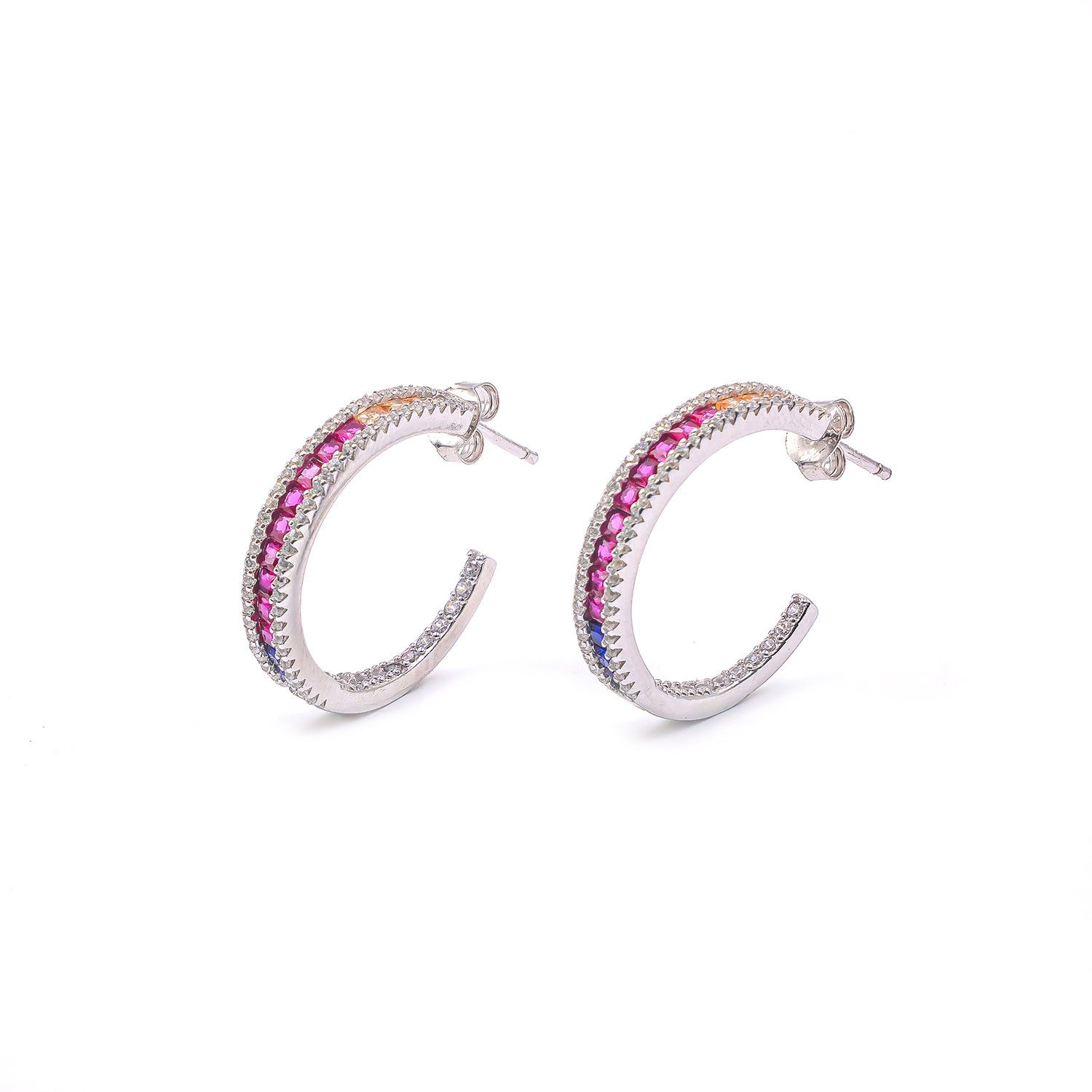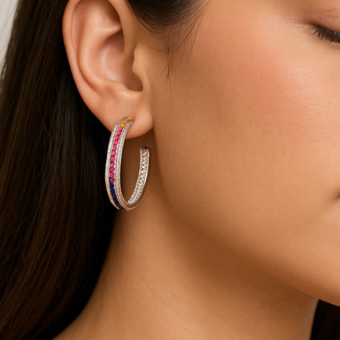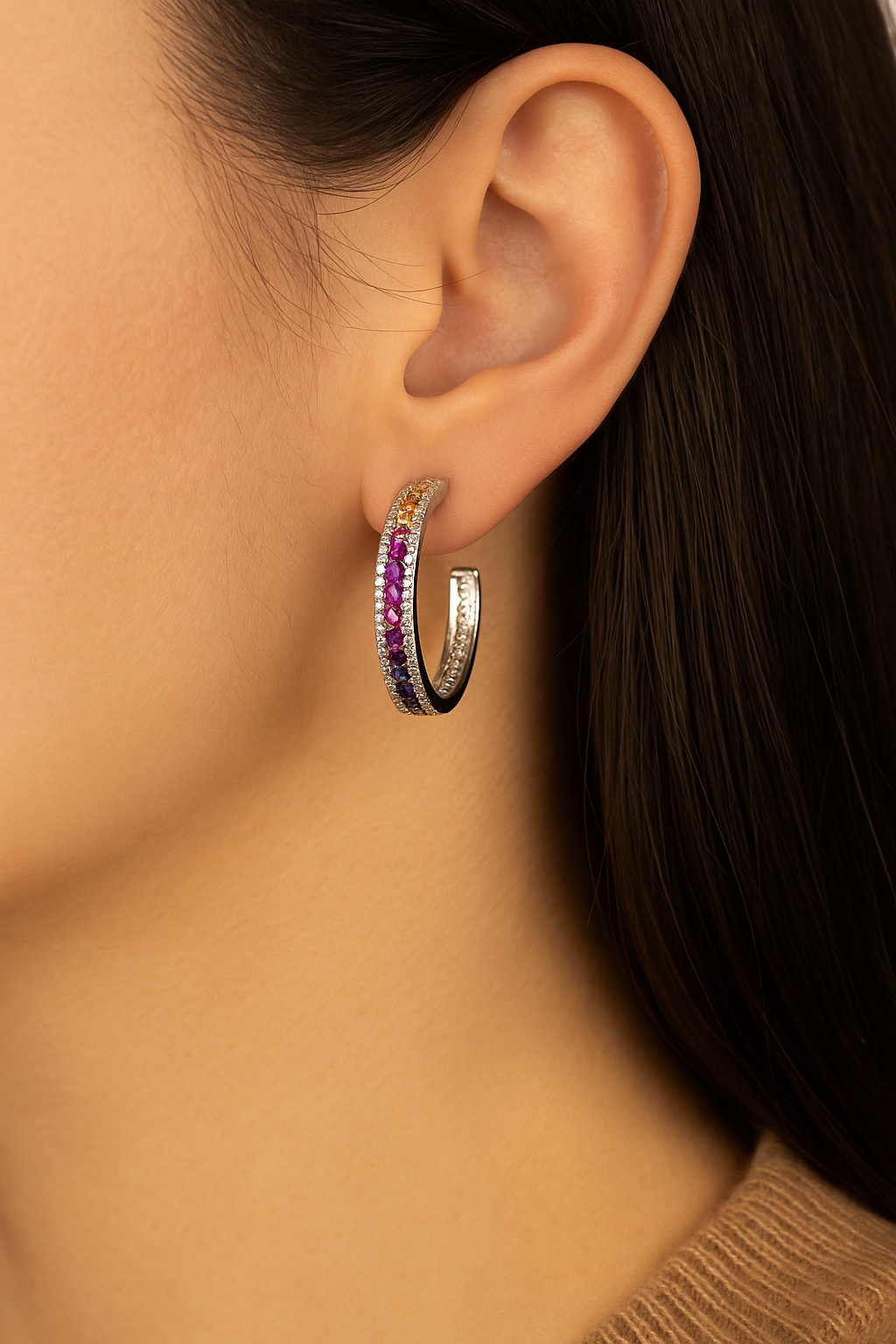 Rainbow stones diamond Hoop Earrings